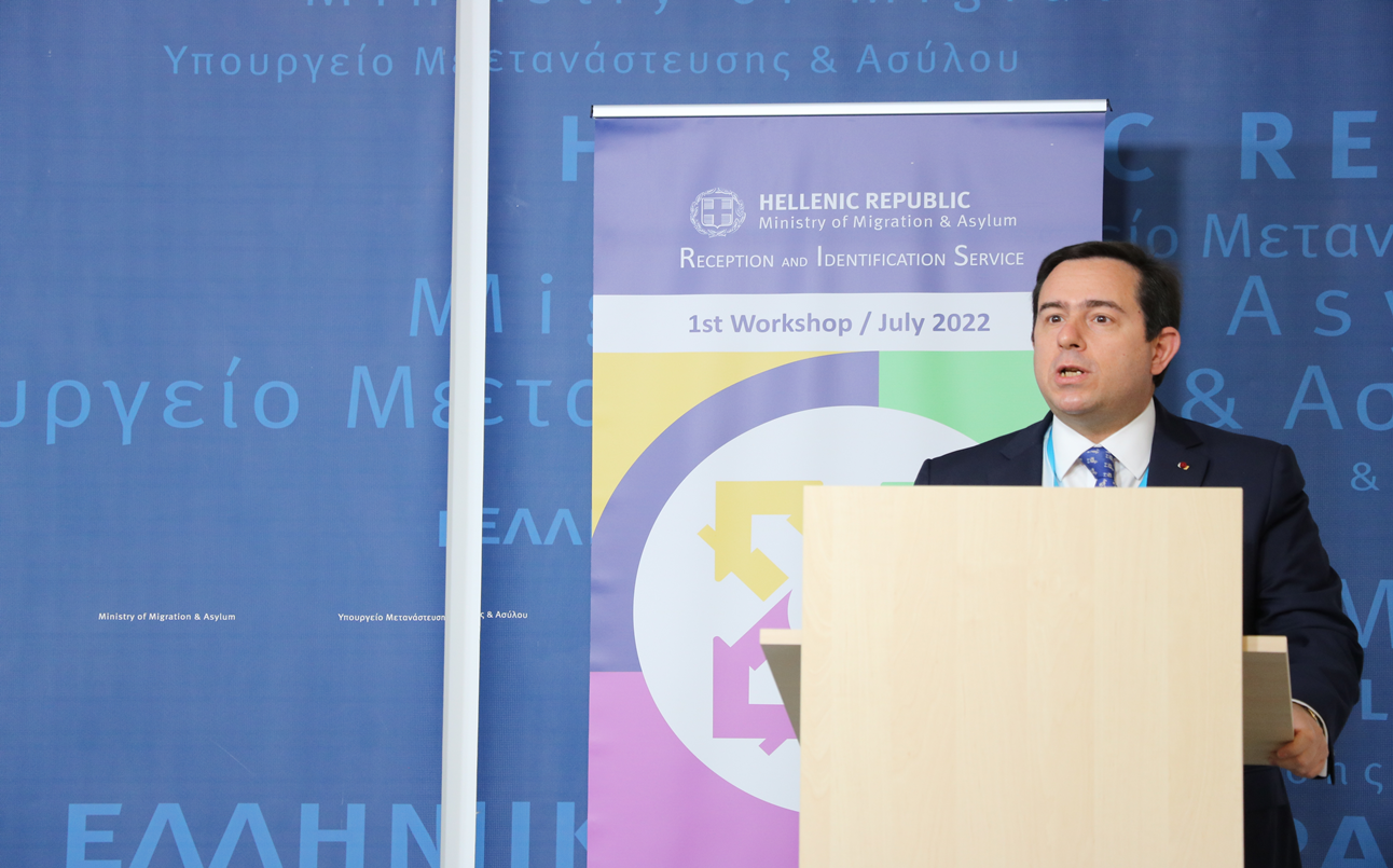 Κατά την έναρξη των εργασιών του workshop, ο Υπουργός Μετανάστευσης και Ασύλου, κ. Μηταράκης, απηύθυνε χαιρετισμό, σημειώνοντας χαρακτηριστικά ότι: “Η πραγματικότητα είναι ότι πήραμε μία ευθύνη το 2020 δημιουργώντας αυτό που μας κατηγόρησε η αντιπολίτευση τη δημιουργία πολλών θέσεων μετακλητών, όπως είναι οι διοικητές στην υπηρεσία υποδοχής και ταυτοποίησης. Αυτό τελικά ήταν ένα μεγάλο ζήτημα που απέδωσε, γιατί ήρθε στο υπουργείο ένα πολύ σημαντικό ανθρώπινο δυναμικό, άνθρωποι με πανεπιστημιακές γνώσεις, άνθρωποι που μπόρεσαν και να διοικήσουν τις δομές και να αποτελέσουν γέφυρα με τις τοπικές κοινωνίες που αντιλαμβάνεστε το 2020 ήταν ακόμη πιο κρίσιμο από την ίδια τη λειτουργία των δομών και έτσι να μπορέσουμε να ανταποκριθούμε από ένα περιβάλλον 92.000 διαμενόντων στ χώρα μας”.